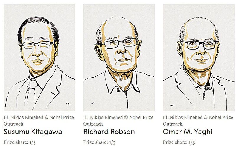 جایزه نوبل شیمی ۲۰۲۵ به سوسومو کیتاگاوا، استاد دانشگاه کیوتو، ژاپن، ریچارد رابسون، استاد دانشگاه ملبورن، استرالیا و عمر، اِم یاغی از دانشگاه کالیفرنیا، برکلی، آمریکا تعلق گرفت.