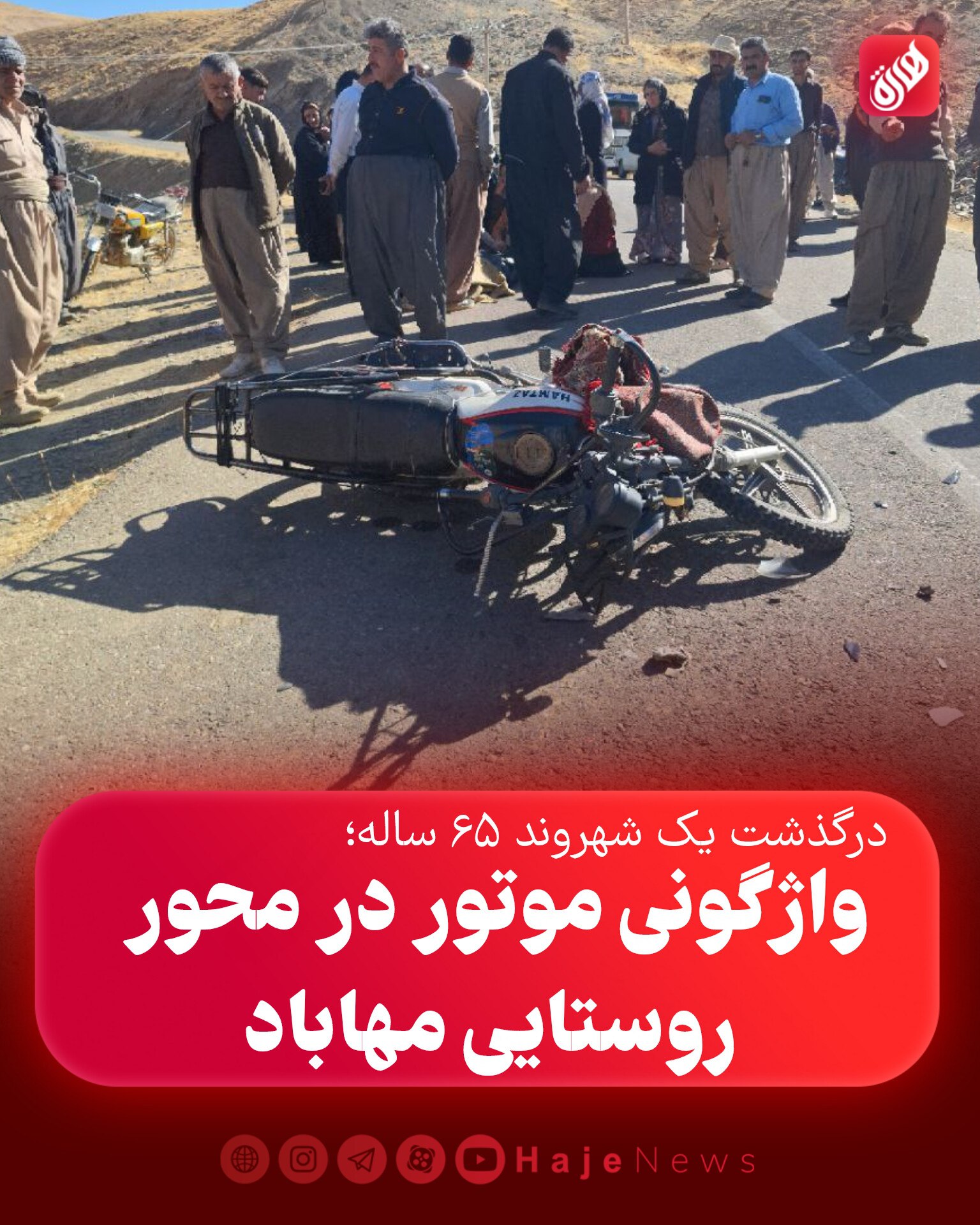 صبح امروز در محور ارتباطی میان روستاهای کاولان و سویناس در شهرستان مهاباد، یک دستگاه موتورسیکلت از مسیر منحرف و دچار سانحه (سقوط) شده است. در پی این واقعه، راکب موتورسیکلت جان خود را از دست داد.