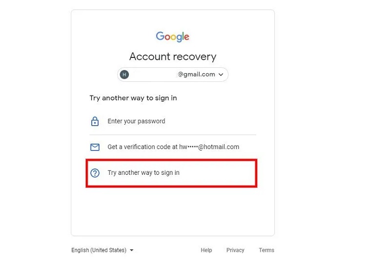 ۶- اکنون بر روی Try another way کلیک کنید.