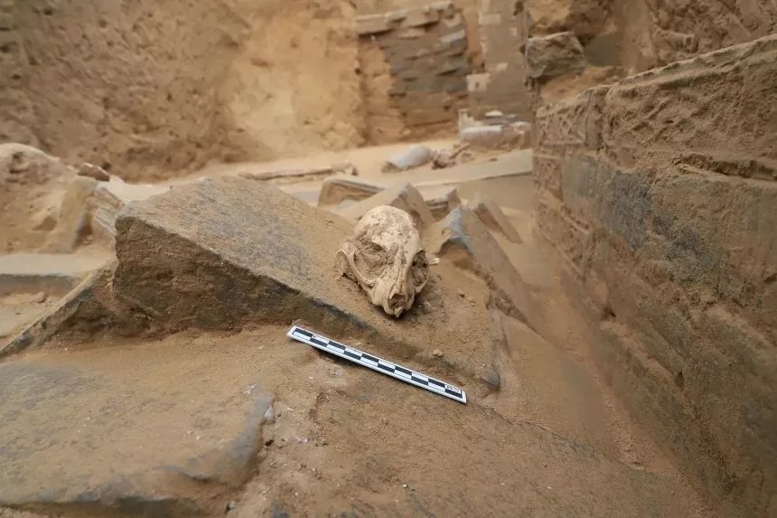 جمجمه یک گربه پلنگی در مقبرهای مربوط به سلسله ه