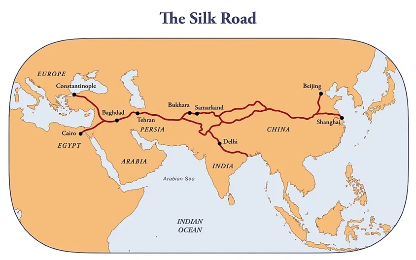 نقشه جاده ابریشم باستانی بین چین و اروپا
