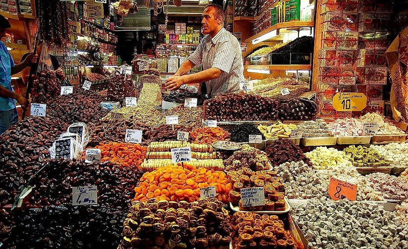 میوههای خشک و فروشگاه باقلوا در بازار ادویه استان